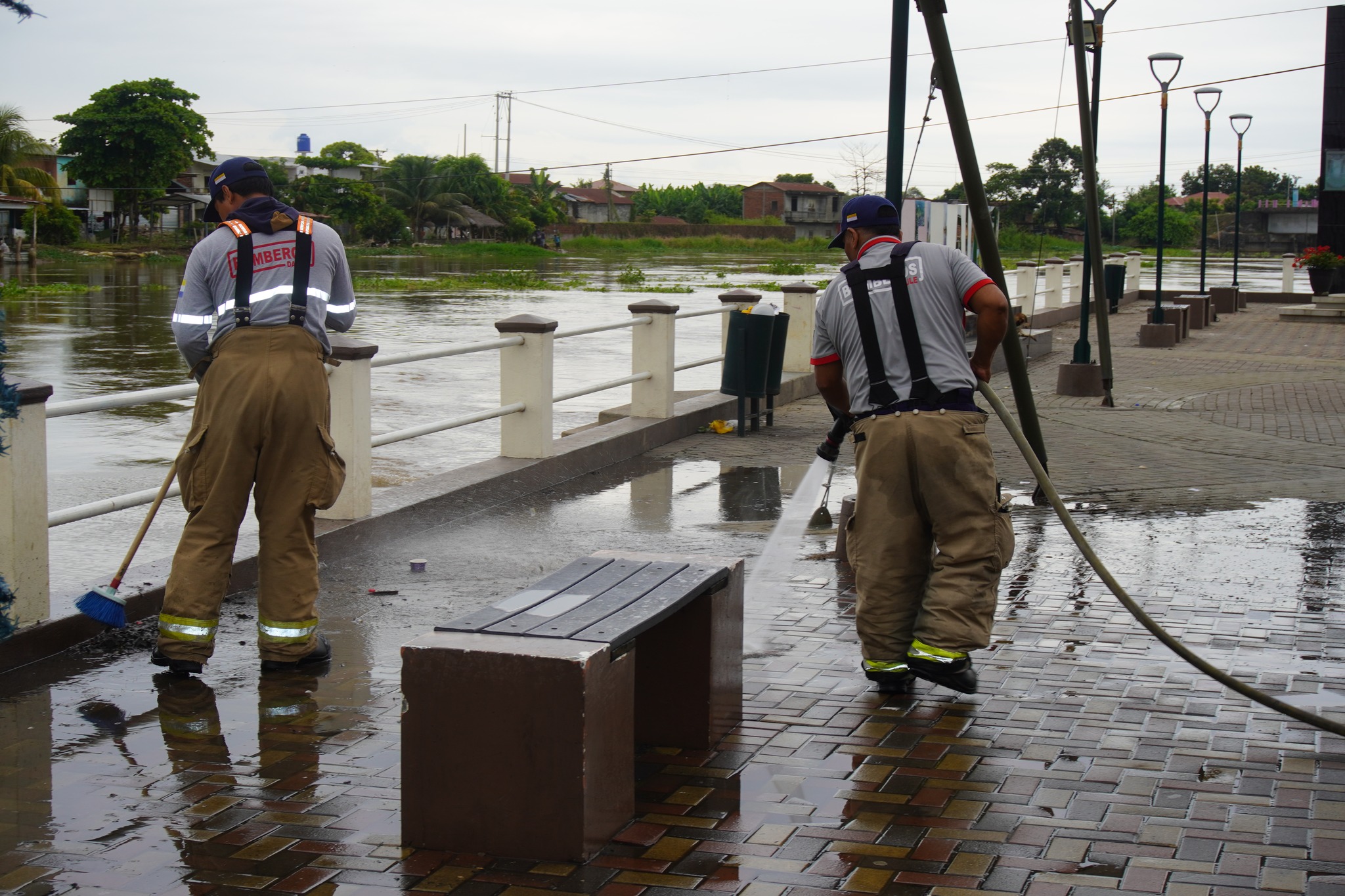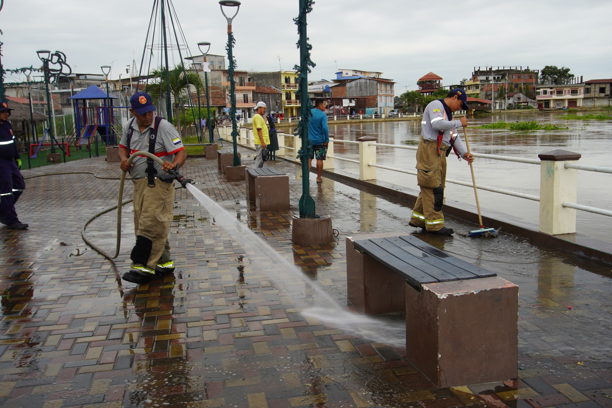 Gracias al Cuerpo de Bomberos del Canton Daule y personal del Gad parroquial, se llevó a cabo la limpieza del malecón Mons. Lothar Zagst, demostrando el compromiso por mantener nuestros espacios en óptimas condiciones